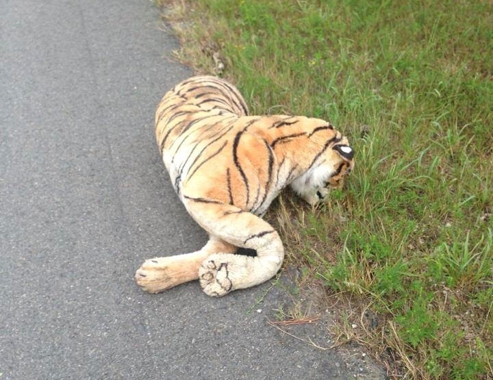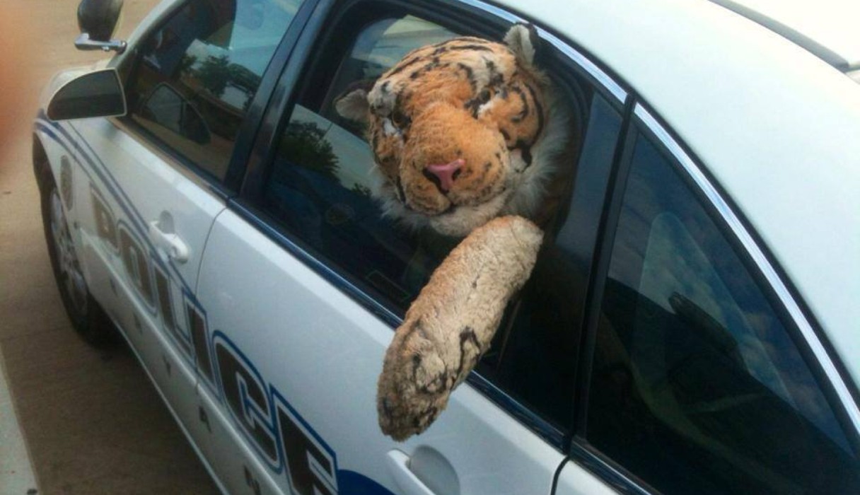 Subject advised that she stopped to take pictures of the animal, but was scared to approach it. Ofc. VanVeelen located the "tiger" and was even nice enough to give him a ride to the PD.Fortunately, the "tiger" turned out to be far less ferocious than the caller had feared. The officer soon discovered that the big cat was, in fact, just a big, cuddly stuffed animal.