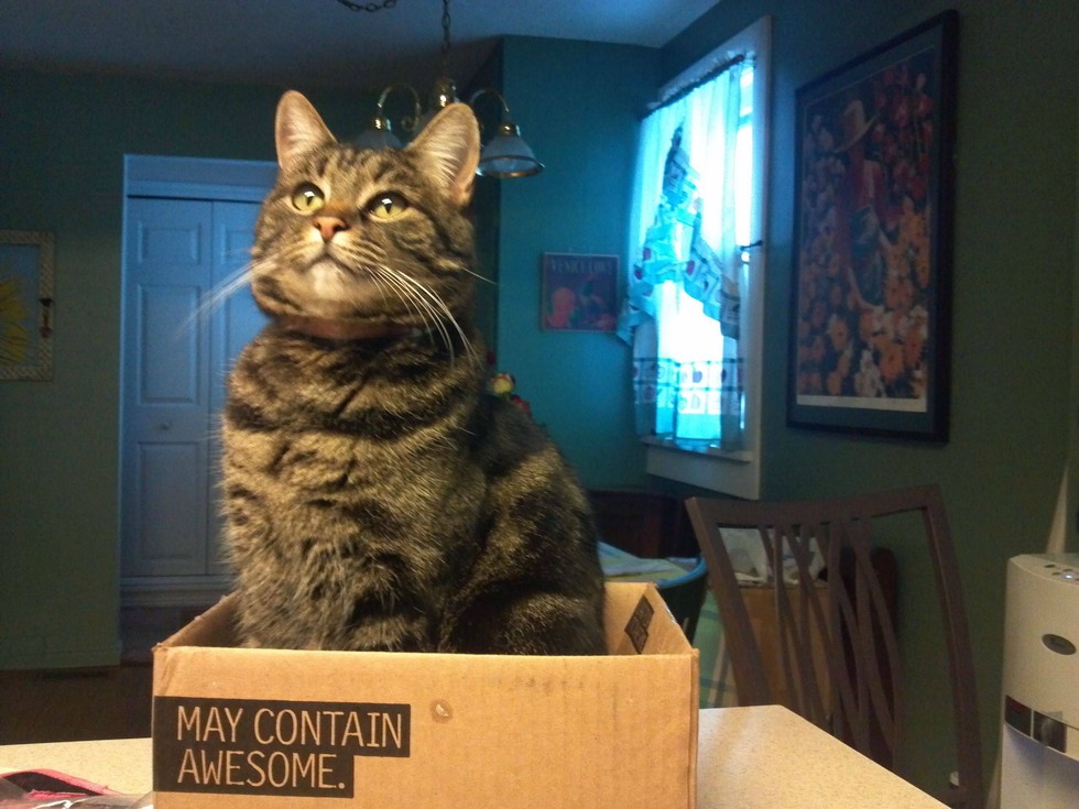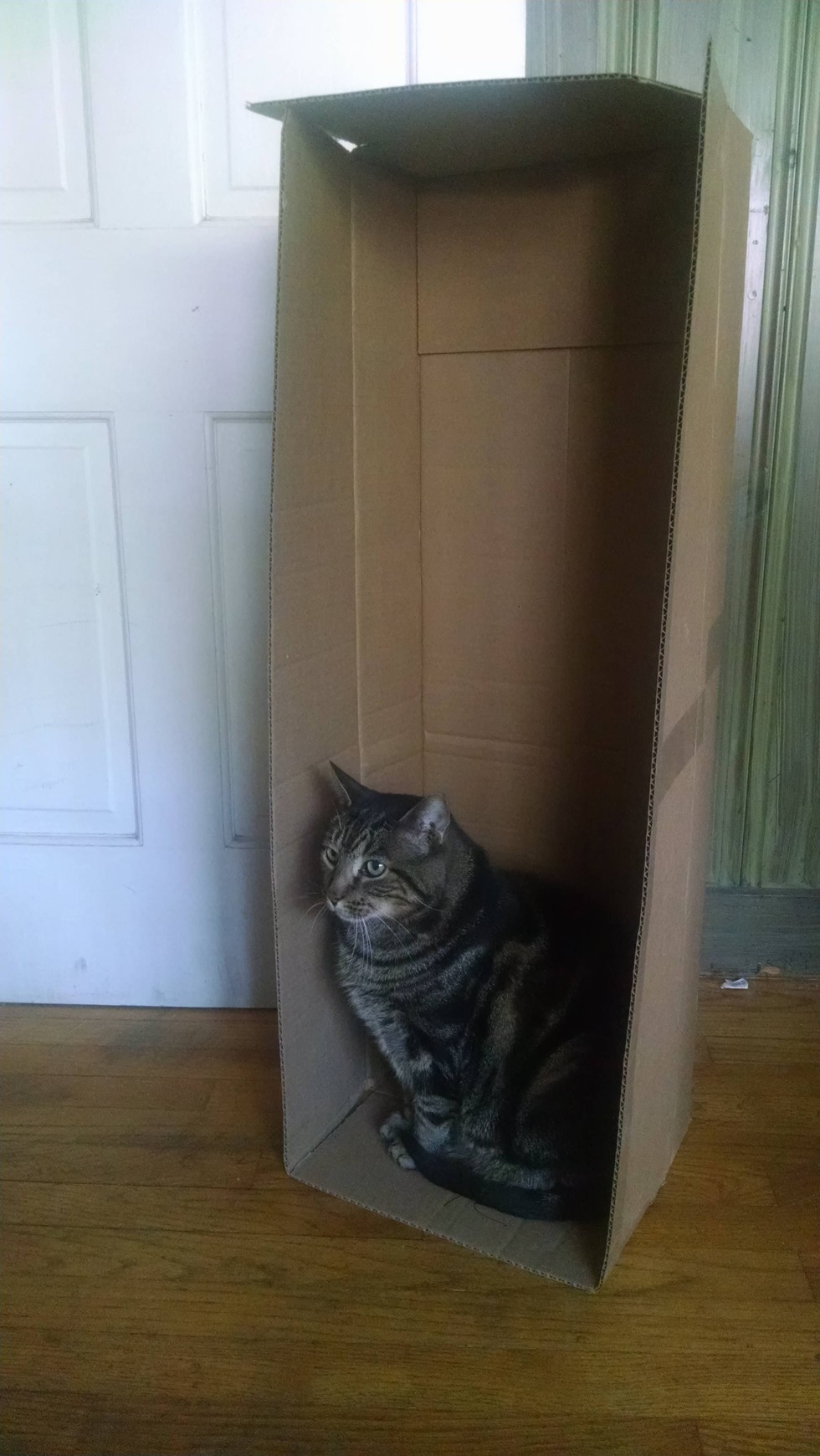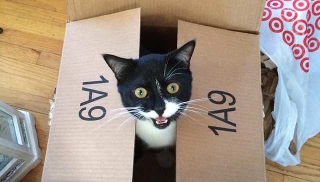 Cats totally dig boxes. Not only are they cozy, but seeking out small spaces is actually a