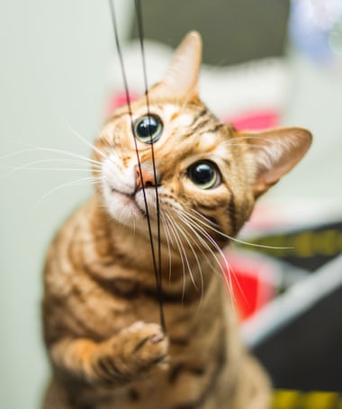 The simple difference with dogs is that cats have to feel secure before they can show their affection, whereas dogs can use their instinctive affection for us as a way of calming themselves when they’re feeling insecure. A cat’s need for social interaction isn’t as great as a dog’s, but they do benefit from a certain amount. One particularly good way that owners can satisfy this is by playing games with their cat using toys that the cat can “hunt” – a toy mouse on a string, a bunch of feathers on a miniature “fishing rod” – thereby satisfying the cat’s hunting instincts as well as its need for company. Other than this, it’s always best to wait for the cat to request attention, because, as you’ve probably guessed by now, they’re not always in the mood.